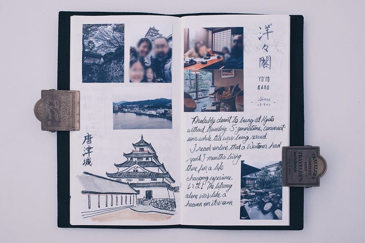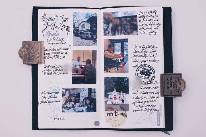 Since drafting this essay, I’ve stopped beating myself up over the missed photo opportunities. I went back to look at past journals, and lo and behold, the entries near significant life events all have photos neatly tucked alongside. Not all is lost.